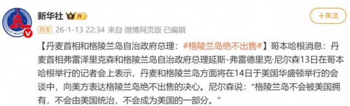 面对美国的威逼利诱,丹麦政府明确表态,格陵兰岛的主权归属不容谈判,拒绝任何形式的“出售”或“控制权移交”提议。